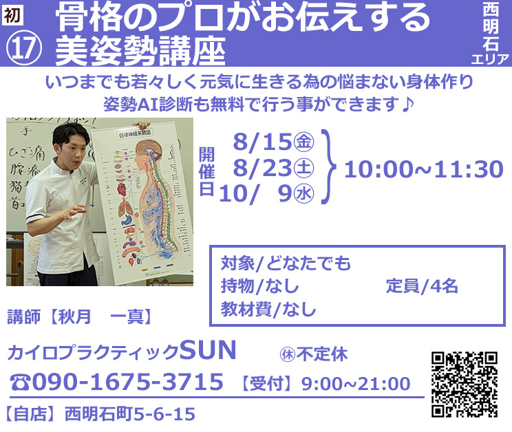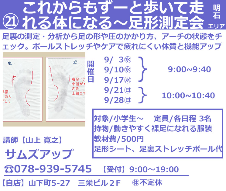 -健康- 2025年7月30日 by akashi-machizemi 明石市の中で参加されている場所を見ていただく場合は、下記の店マークをクリックください。 ご予約いただけるのは、8月1日(金)からです。よろしくお願い致します。 申し込み方法 お問い合わせ 「たこあしカフェ」明石市鍛治屋町4-22TEL078-920-8722 担当:長谷まで